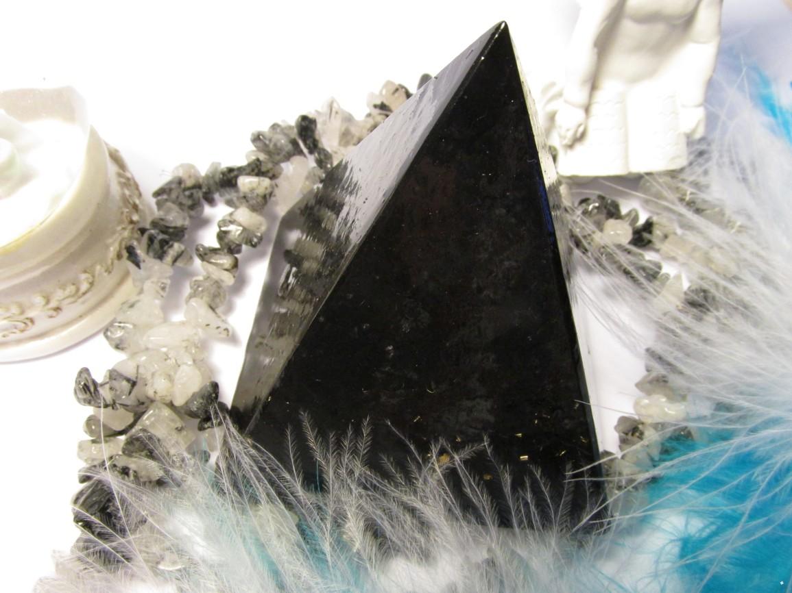 Orgonitová šungitová pyramida s pravým surovým šungitem a šungitovým prachem. Tajemná, mocná, magická...