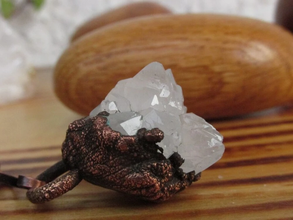 Pokud hledáte jedinečný šperk, který vám zaručeně zvedne náladu a potěší vaše tělo i duši, právě jste našli :-) Další z kolekce amuletů s křišťálovými minidrúzičkami. Drobounké krystalky křišťálu se na slunci rozzáří tísícem odlesků a zavedou vás zpět k Matce Přírodě, jejím kouzlům a magii.