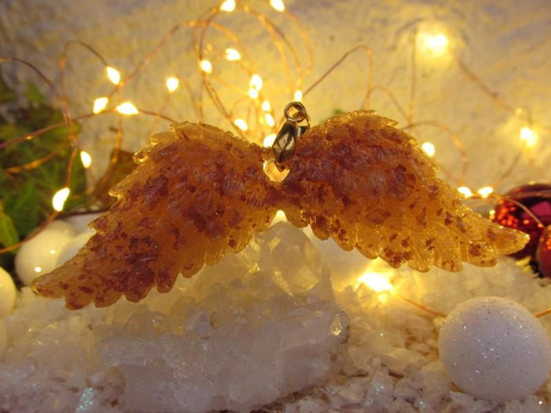 Vánoční orgonitová křídla v sytě zlatě duhovém kabátku. Naplněná andělskou něhou a sváteční náladou. K zavěšení na vánoční stromeček, do okna, nebo k položení na sváteční stůl.