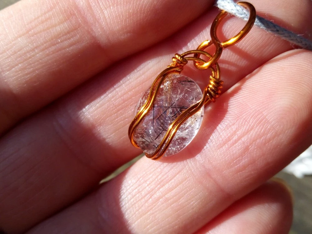 - "Pomáhej" - drátovaný šperk, přívěsek, Turmalín v křišťálu& Měď
