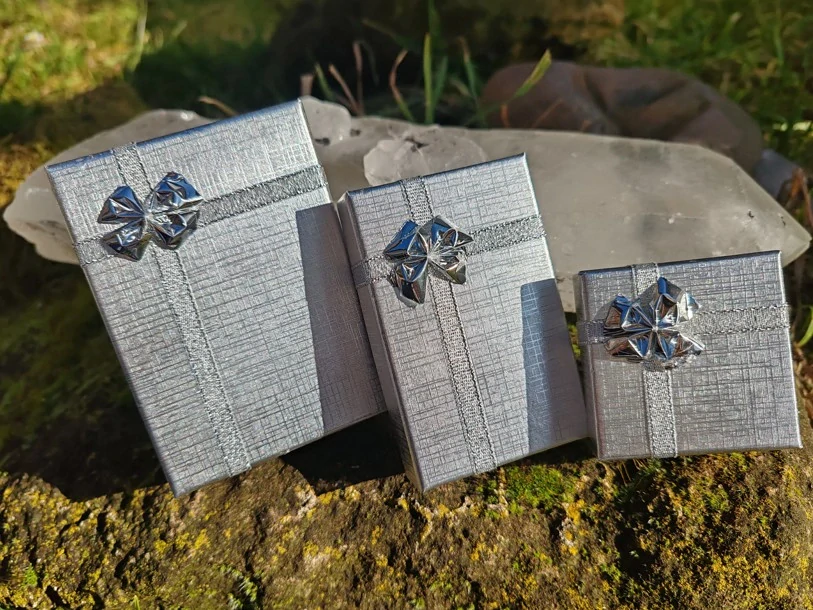 Stříbrná je neutrální, a přesto slavnostní. Skvěle podtrhuje barvu všech minerálů – od temného šungitu až po jemný růženín. Je to barva měsíce a vnitřního klidu, která se neokouká a vždy působí vkusně. Každá krabička je vyrobena z pevného kartonu, aby vaše poklady byly v bezpečí a dorazily k vám očištěné a plné Lásky.